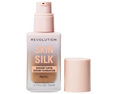 Revolution Skin Silk Radiant Satin Tinted Foundation is a lightweight, serum-like foundation that offers light to medium buildable coverage with a natural, radiant satin finish. Infused with skincare ingredients like hyaluronic acid and peptides, it hydrates the skin while providing a smooth, soft-focus look that feels breathable and weightless. It's especially well-suited for normal to dry skin types, blending easily and enhancing the skin’s natural glow without appearing cakey or heavy. Many users appreciate its comfortable wear and skin-like finish, though those with oily or very textured skin may find it less long-wearing or prone to separating if not set properly. The foundation is also praised for being budget-friendly and comes in a wide range of shades, making it accessible for everyday use.