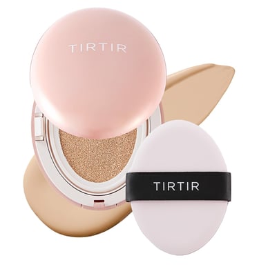 The TIRTIR Mask Fit Aura Cushion Foundation is a Korean cushion foundation that delivers full coverage with a radiant, satin glow finish. Its skin-fit formula adapts to the complexion for a smooth, even look, effectively concealing imperfections while maintaining a lightweight, comfortable feel. Designed for long-lasting wear, it ensures a flawless, dewy finish that stays fresh throughout the day, making it ideal for achieving a polished, luminous complexion effortlessly.