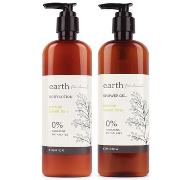 Kimirica Earth Shower Gel and Moisturizing Summer Body Lotion Bath Care Duo.
