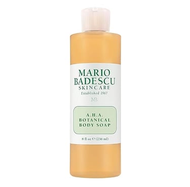 Mario Badescu AHA Botanical Body Wash is a refreshing, exfoliating cleanser formulated with fruit-derived alpha hydroxy acids and natural plant extracts to help gently smooth and refine the skin’s texture. Designed to slough away dull, rough surface buildup, it promotes a brighter, more even appearance while maintaining a clean, fresh feel. Infused with soothing botanical ingredients, this body wash not only revitalizes the skin but also leaves it soft, refreshed, and comfortable for daily use.