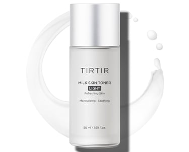 The TIRTIR Milk Skin Toner Light is a hydrating Korean toner infused with 4% niacinamide to refine pores, balance oil, and brighten the complexion. Its lightweight milky texture absorbs quickly, delivering instant moisture without stickiness. Enriched with panthenol, ceramide, and rice bran extract, it soothes, strengthens the skin barrier, and leaves the skin soft, smooth, and radiant. Gentle and vegan-friendly, this toner is ideal for all skin types, including oily and sensitive skin.