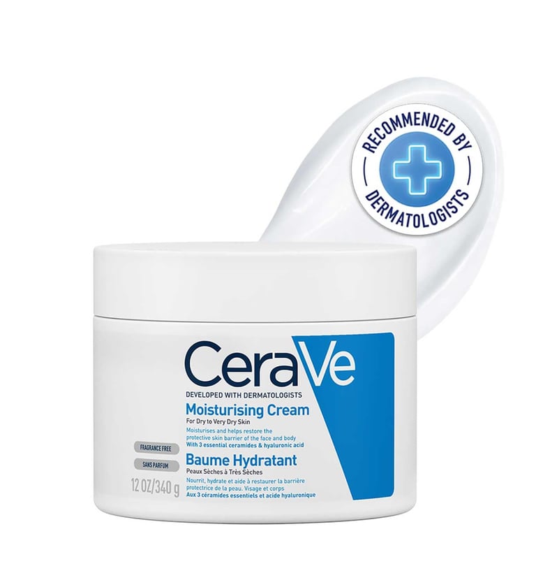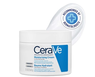 CeraVe Moisturizing Cream is a rich, dermatologist-developed formula that provides long-lasting hydration while restoring the skin’s protective barrier. Enriched with essential ceramides and hyaluronic acid, it helps lock in moisture and prevent dryness, leaving the skin soft, smooth, and comfortable. The unique MVE Technology releases nourishing ingredients gradually throughout the day for continuous hydration. Suitable for all skin types, including sensitive skin, this non-greasy, fragrance-free cream is ideal for both face and body, delivering deep nourishment and healthy-looking skin with every use.