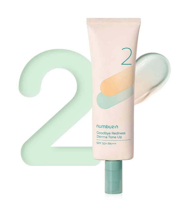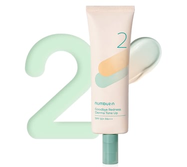 numbuzin No.2 Goodbye Redness Derma Tone Up | Color Corrector, Green to Beige, Derma Ingredients, Tea Tree Leaf.