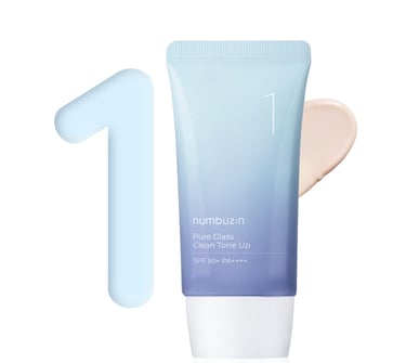 numbuzin No.1 Pure Glass Clean Tone Up|Liquid Brightening, Hyaluronic Acid, Glossy Finish, Tinted, Light Beige Color.
