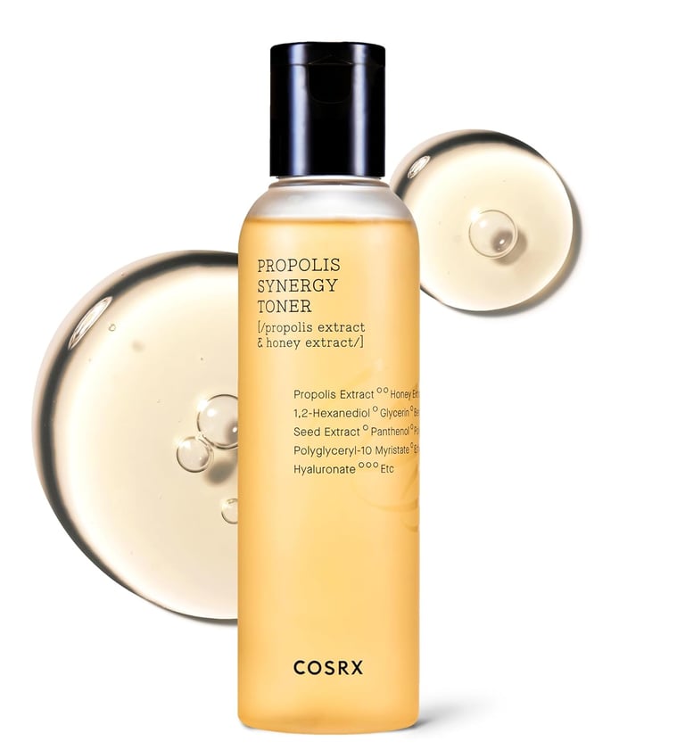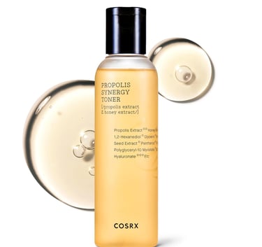 COSRX Full Fit Propolis Synergy Toner is a deeply hydrating toner enriched with 72.6% Black Bee Propolis Extract and 10.7% Honey Extract to deliver instant moisture and radiant glow to dull, tired skin. Its lightweight yet nourishing texture absorbs quickly, leaving the skin dewy and refreshed. Formulated with Panthenol to soothe and strengthen the skin barrier, it helps improve elasticity and promotes a healthy, luminous complexion. Perfect for dry, sensitive, or dehydrated skin, this toner preps the skin beautifully for the next steps in your skincare routine, enhancing overall moisture retention and smoothness.