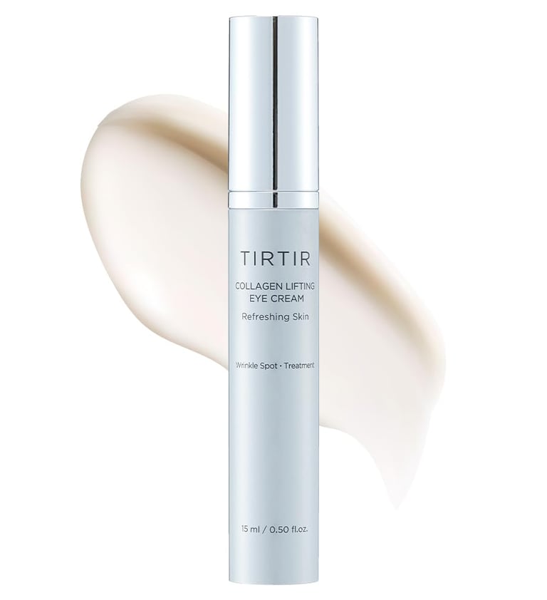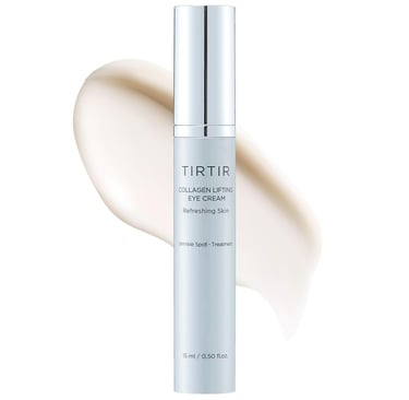 The TIRTIR Collagen Lifting Eye Cream is a nourishing and firming eye cream designed to target the delicate skin around the eyes. It combines a plant-derived collagen complex with multiple peptides to help improve elasticity and reduce the appearance of fine lines, while niacinamide brightens and evens skin tone. Enriched with adenosine and avocado oil, it provides hydration and supports collagen production for a smoother, firmer under-eye area. The cream comes with a cooling metal roller applicator that helps reduce puffiness and enhances absorption, making it suitable for all skin types and a thoughtful addition to any skincare routine focused on lifting and rejuvenating the eye area.