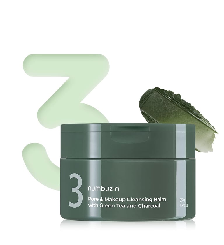 numbuzin No.3 Pore & Makeup Cleansing Balm with Green Tea and Charcoal is a gentle yet powerful cleanser that melts away makeup, sunscreen, and impurities while deeply purifying pores. The balm transforms into a silky oil upon application, effortlessly dissolving stubborn makeup and excess sebum without stripping the skin. Enriched with Charcoal to draw out blackheads and dirt, and Green Tea Extract to calm and refresh the skin, it leaves your complexion clean, smooth, and balanced. Perfect for daily use, it promotes clearer pores and a refreshed, radiant finish.