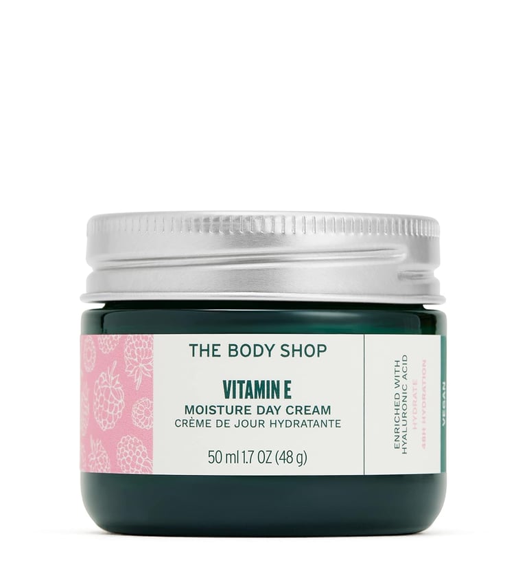 The Body Shop Vitamin E Moisture Cream is a lightweight, fast-absorbing moisturizer that delivers all-day hydration and protection for all skin types. Enriched with Vitamin E, wheat germ oil, and hyaluronic acid, it helps replenish moisture, strengthen the skin’s barrier, and defend against environmental stressors. The creamy yet non-greasy texture leaves the skin feeling soft, smooth, and refreshed with a healthy glow. Perfect for daily use, this cult-favorite cream keeps the complexion balanced, supple, and hydrated, making it an essential step in any skincare routine.