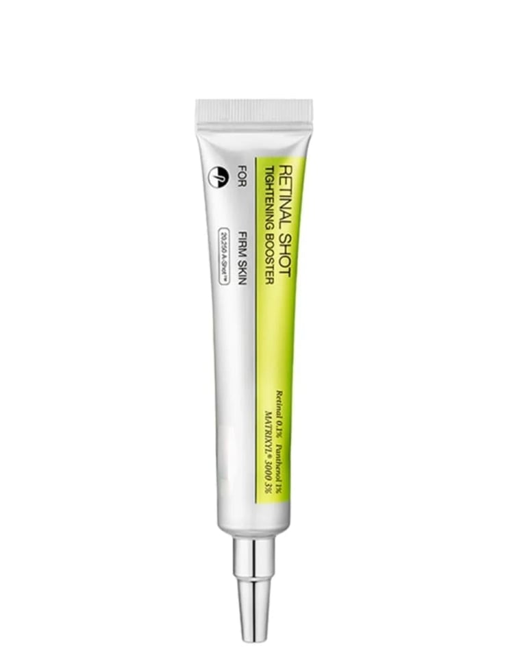 The TIRA The Vita A Retinal Shot Tightening Booster is a Korean anti-aging treatment powered by 0.1% retinal and 3% Matrixyl peptide complex to visibly improve skin firmness, texture, and elasticity. Its advanced A-Shot™ delivery system allows deep absorption, helping to reduce fine lines, wrinkles, and enlarged pores while refining overall skin tone. Designed for nighttime use, this booster promotes smoother, tighter, and more youthful-looking skin with consistent use.